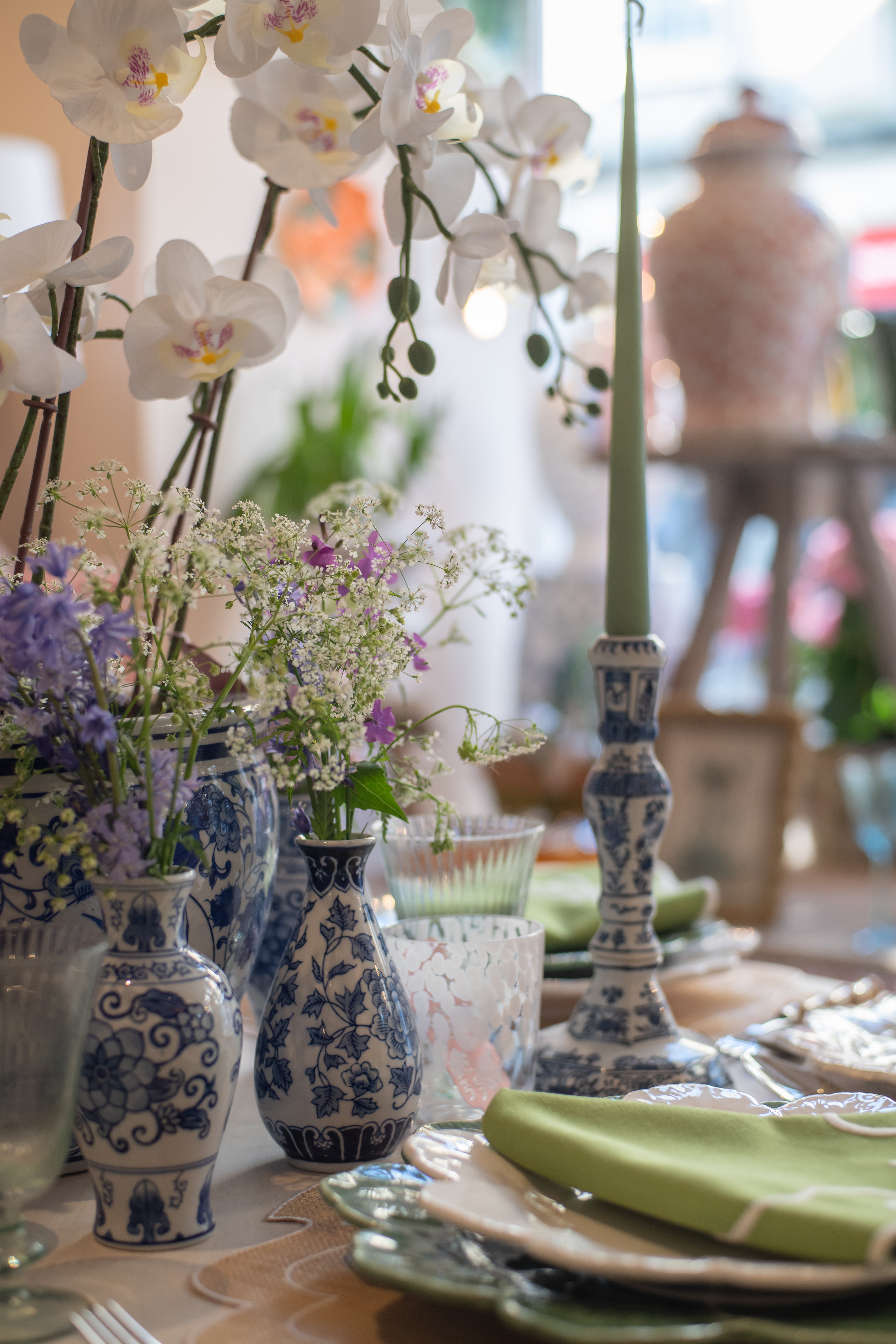 Blue & White Candle Holders (Pair)