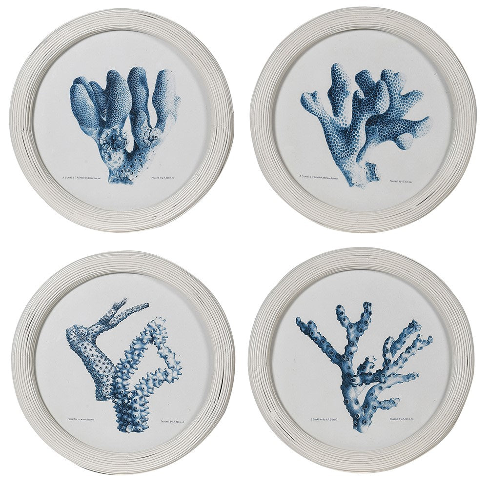 These lovely set of coral prints bring costal living into your home. Fresh clean hues make for a breath of sea air feeling from this artwork. The thick wooden frames adds a luxurious textured feel to the walls.